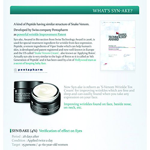 A synthetic substance that mimics a polypeptide found in Temple Vipers venom, syn-ake is described in Swiss as similar to applying botox. Its essentially a potent wrinkle healer expertly used in Mizons S-Venom Syn-Ake Wrinkle Tox Cream to give you full star-quality results. It gives you volume on shallow parts of your skin, heals your skin quickly, and increases flexibility and elasticity in your skin. As it soothes and provides extra smooth skin, it firms, lifts, and keeps you hydrated all day long.