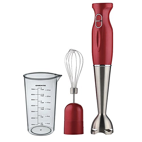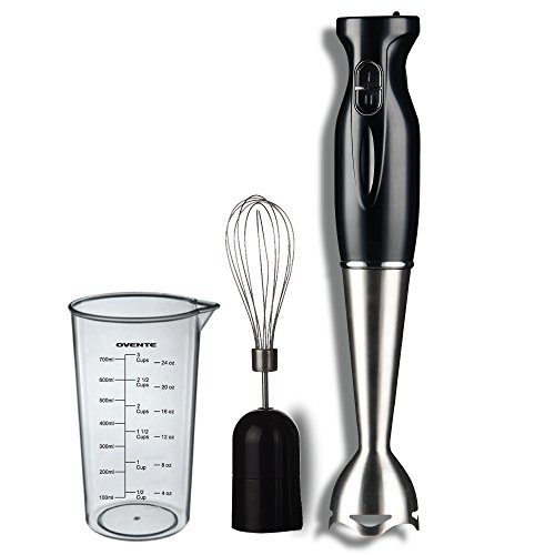 Discover a world of innovative cooking possibilities with the Ovente HS580 Handheld Immersion Blender. It makes blending and mixing any soft foods a pleasure because it makes it SO easy and effortless, that’s actually fun! Its lightweight body along with its ergonomically-designed, non-slip handle is so comfortable to hold and control that cooking won’t ever feel like a chore again. Whip up all of your favorite gourmet soups, guacamole, smoothies/shakes, cake batter, salsas, sauces, marinades, salad dressings, or even homemade baby food for your precious bundle of joy with just one press of a button. This set also comes with BPA-Free and dishwasher-safe attachments: a stainless steel mixing stick, a stainless steel egg whisk, and a heavy-duty Tritan beaker (24oz) with cup measurements. These attachments are all super versatile, useful, convenient in the kitchen and help you to create endless cooking/blending possibilities even better and quicker than before!