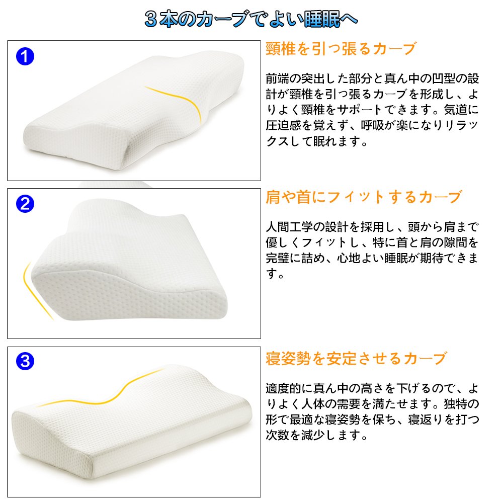 This low rebound health pillow is an ergonomically designed curve design, so you can support the head, neck and shoulder firmly, and you can quickly fall asleep by relaxing the whole body by dispersing the pressure on the cervical spine