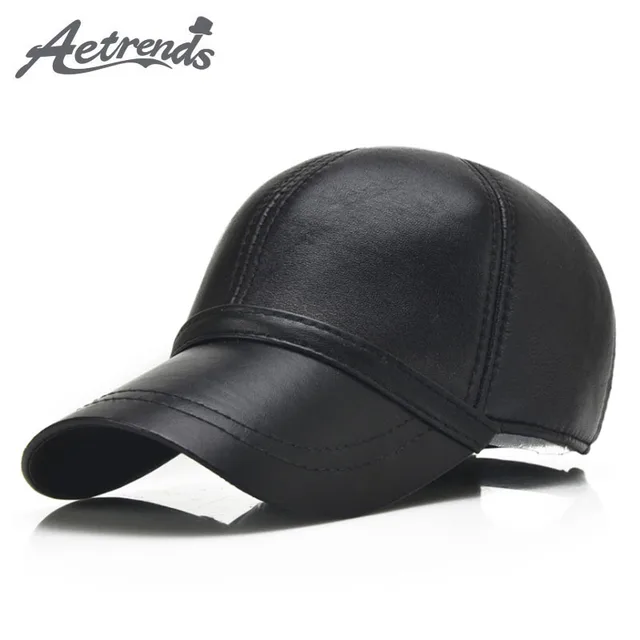 | [해외][AETRENDS] 2017 새로운 6 패널 100% 가죽 야구 모자 남성 블랙 양피 가죽 모자 남성 스냅 백은 Z-5292 |