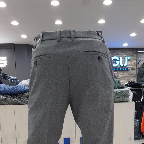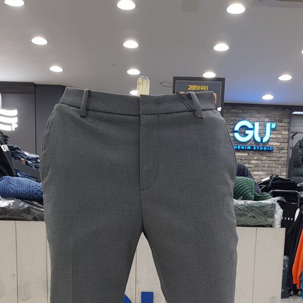 GU# 지유샵 사이드밴딩기모슬랙스 FUMWCPS101 (남성)(겨울) 양쪽 허리 옆 밴딩처리한 슬림핏 . 안감기모원단 보온성이 좋음.마네킨32착장.