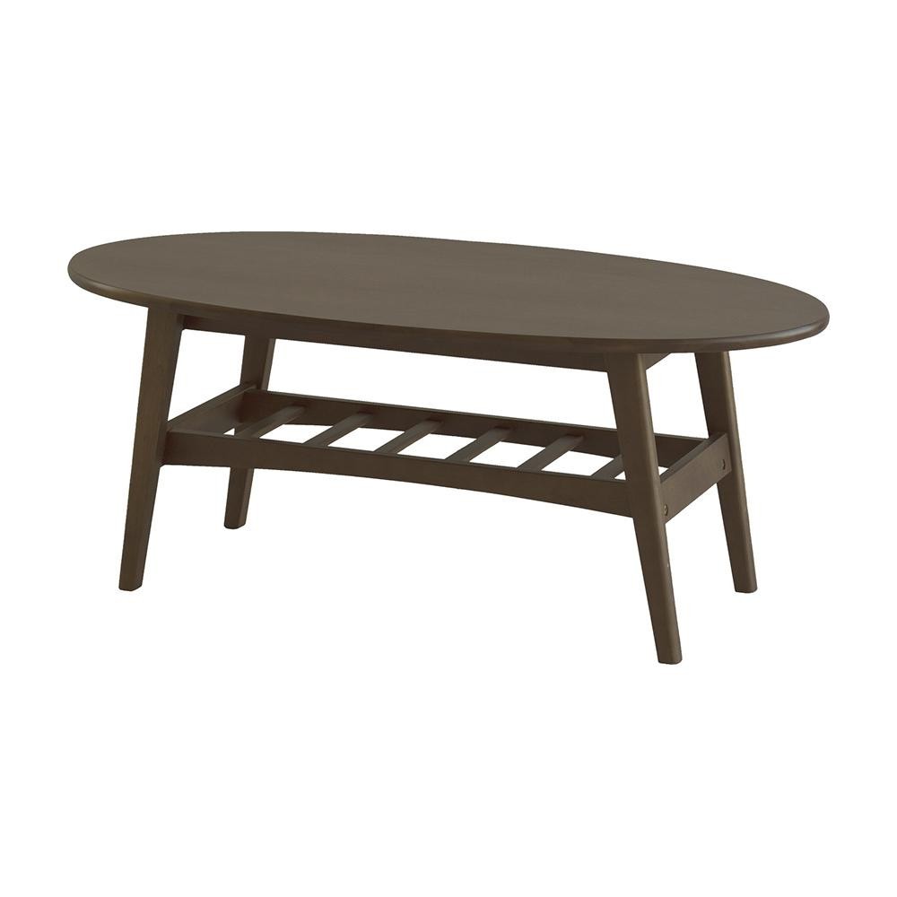 ウォールナットを使用した、落ち着きのあるデザインのリビングテーブル。便利な棚付きです。 |