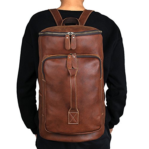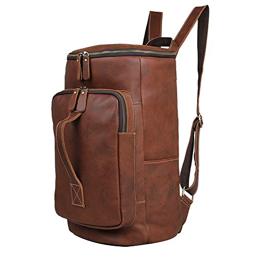-. Feature : Material: 100% Genuine leather, super durable and sturdy / DIMENSIONS: 17.5" x 10.0" x 10.0" (LxHxW) / The main pocket with the dual zippers closure, easy to open and close, and the inside of the pouches are wearable and portable / Multi-purpose uses: Handbag, backpack, shoulder bag, satchel. Perfect for outdoor, working, traveling, hiking, camping, school and daily use / Any quality problems with your bag, please contact us, we will solve it
