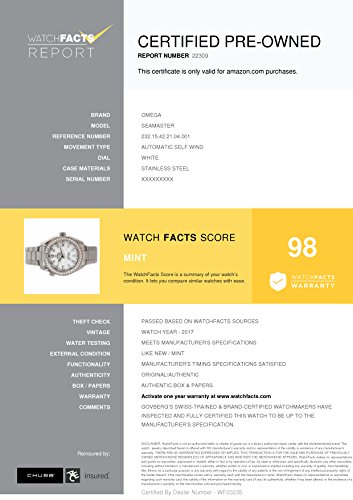 -. Feature : Omega Seamaster 232.15.42.21.04.001 with white dial / Authenticated by WatchFacts. Grade Rating: 98 / Condition: Mint / Comes with original box and manufacturer's papers offered with this watch / Automatic-self-wind movement / Watch year: 2017