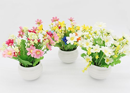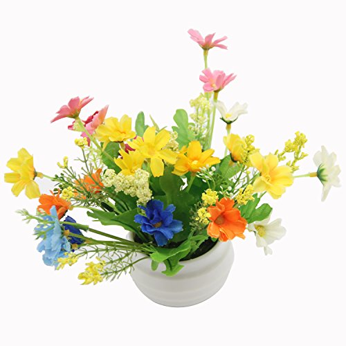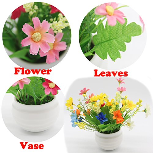 H&W Artificial Flowers Mini Flowers, Pot Plant Knick-Knack, Flowers & Greenery & Flower Pot, Mixed Colors (HH3-D1)