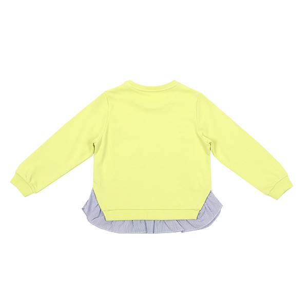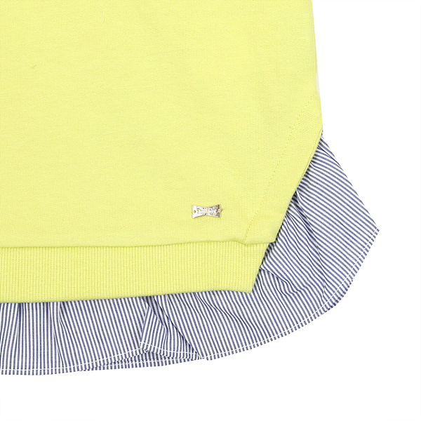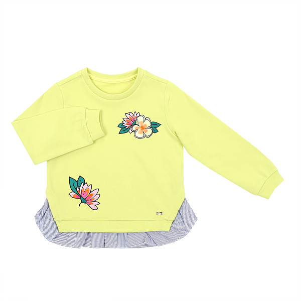 상세설명-상큼하고 러블리한 라임컬러에 플라워패탄의 자수장식이 포인트가 되는 티셔츠입니다.