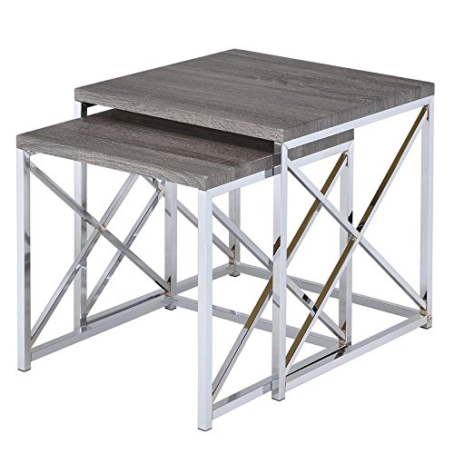 -. Feature : Contemporary Design / X Design Nesting Tables, Set of 2 / Chrome Legs / Dark Wood Grain Top