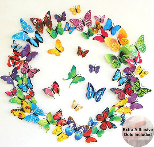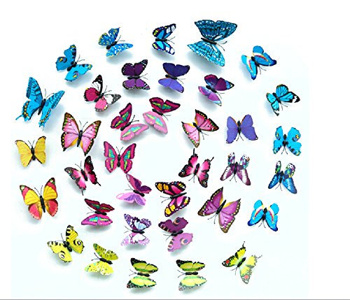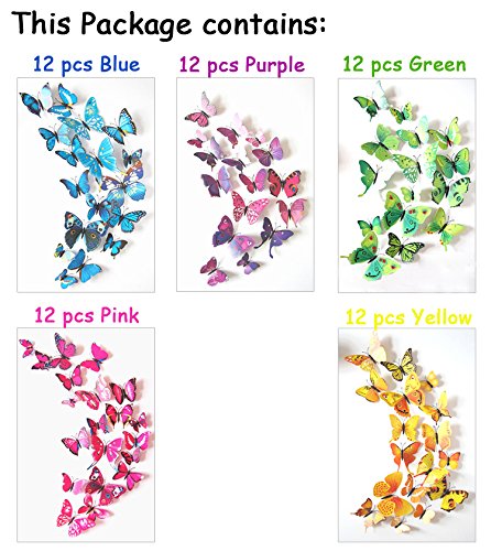 ElecMotive 60 Pcs 5 Packs Beautiful 3D Butterfly Wall Decals Removable DIY Home Decorations Art Decor Wall Stickers & Murals for Babys Bedroom TV Background Living Room (60 pcs in 5 Multi-Colors)