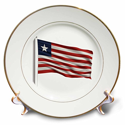 3dRose Flag of Liberia on a flag pole over white Liberian - Porcelain Plate, 8-inch (cp_157201_1)