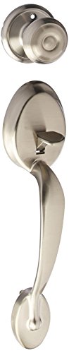 -. Title : Schlage FE285PLY619GEO Satin Nickel Plymouth Keyed Entry Handleset with a Georgian Interior Knob from the Plymouth Collection