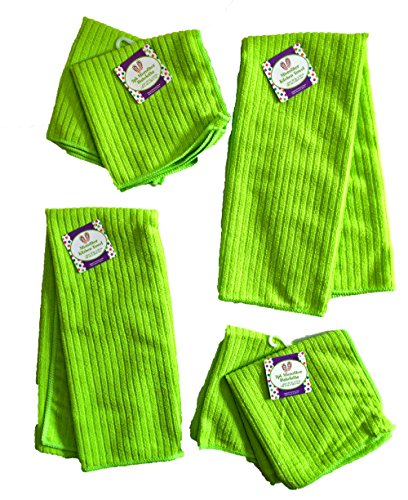 Set of 6 Lime Green Microfiber Kitchen Towels (25" x 15") and Dishcloths (12" x 12") Vibrant Colors 100% Polyester (6, Lime)