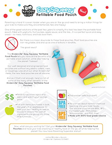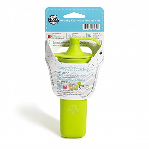Kinderville Patented Eazy Squeezy Food Pouch - Green Color - 100% Food-Grade Silicone Food Pouch - Perfect for Daycare Thru 5th Grade - Designed in California