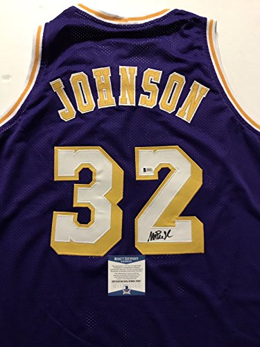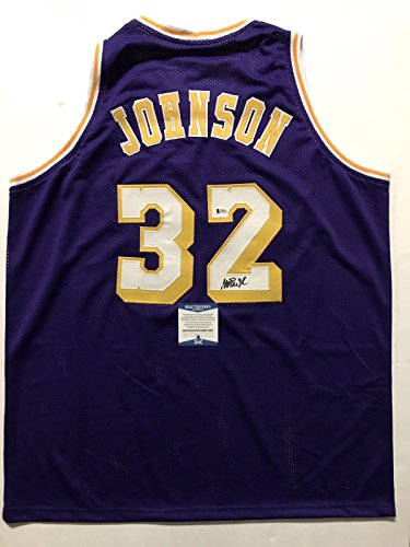 Autographed/Signed Earvin Magic Johnson Los Angeles Lakers Purple Basketball Jersey Beckett BAS COA