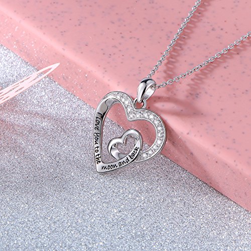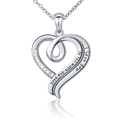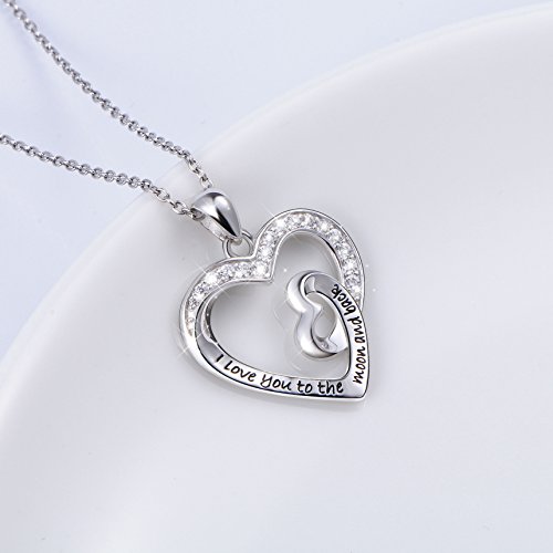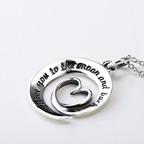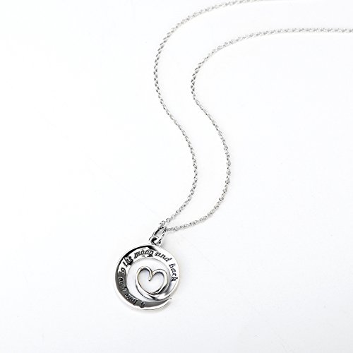 -. Feature : Charm: " I love you to the moon and back " / Material: Solid .925 Sterling Silver Cubic Zirconia Pendant Necklace with White Gold Plated; Finish: High Polish / Pendant Size:1.0*0.79 inches;Chain Type:18 inch Rolo chain with sP.R.Ing-ring clasp;Chain Width: 1.2mm; Total Weight:3.75g / Gift ideas/seasons:Great gift choice for special occasions such as a Birthday, Graduation,Anniversary,Wedding,Party,Valentine's Day,Mother's Day,Easter,Thanksgiving and Christmas / Featured AAA Grade Quality Sterling Silver, Nickel-free, Lead-free, Cadmium-free and Hypoallergenic, Long Time Wearing Keeps You a Good Health.
