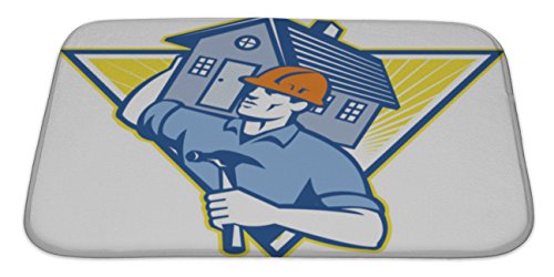 Gear New Builder Construction Worker Hammer House Bath Rug Mat No Slip Microfiber Memory Foam
