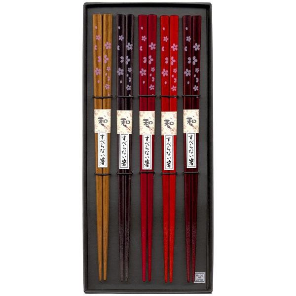 地色に桜のイラストが映えるデザインのお箸の5膳セット。