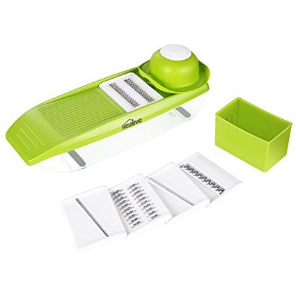 Multi-functional Adjustable Mandoline Slicer, Kealive Vegetable Cutter& Julienne Slicer, Food Chopper, Fruit Cutter, Dicer with 5 Interchangeable Stainless Steel Blades & Food Storage Container