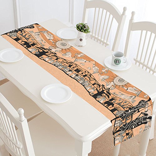 -. Title : InterestP.R.Int Africa Giraffe Elephant Cotton Table Runner Placemat 16 x 72 inch, Aztec African Table Linen Cloth for Office Kitchen Dining Wedding Party Home Decor