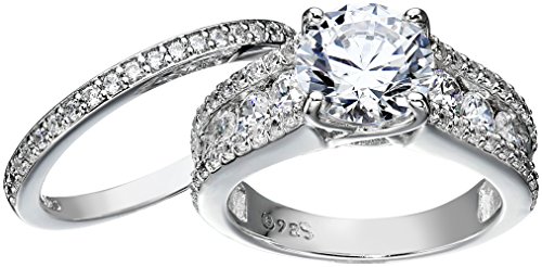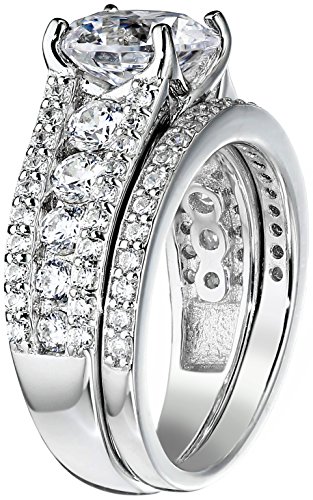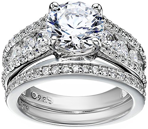 -. Title : Sterling Silver Platinum-Plated Swarovski Zirconia Ring