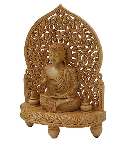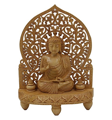 DharmaObjects Large Buddha Hand Carved Wooden Statue (12" Tall X 8.5" Wide, Buddha)