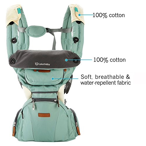 Lekebaby 9-in-1 Baby Hip Seat Carrier Front and Back Positions Breathable All Seasons for Mom and Dad, Green