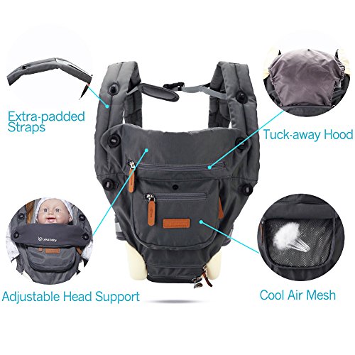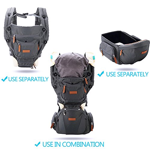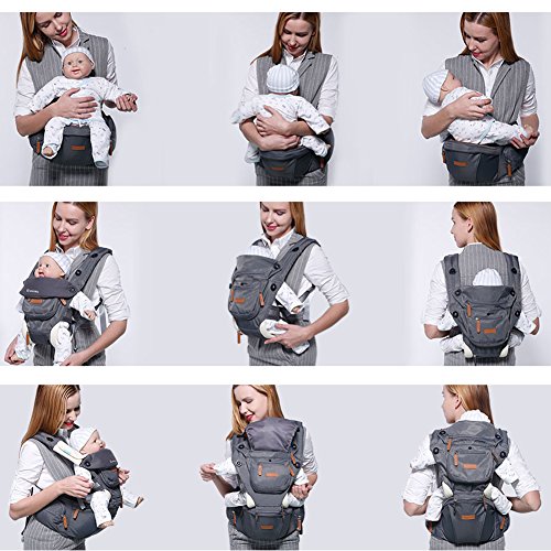Lekebaby 9-in-1 Baby Carrier with Hip Seat Front and Back Carry Positions for Infants and Toddlers, Grey