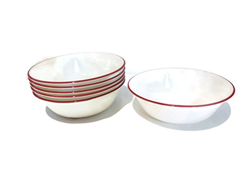 Corelle Dinnerware 18 ounce Family Style Cereal/Soup Corningware Serving Bowl White with Red Band, Set of 6