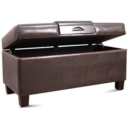 -. Feature : The leatherette storage bench with wood tray allows you to organize your room in style. With this product you can easily and inconspicuously store and arrange bed covers, books, magazines, toys keepsakes and more. / This handy and stylish contemporary storage solution features a large compartment that is hidden by a luxuriously padded top cushion that can also double as a comfortable seating option. / Apart from the storage compartment, this wood storage bench also comes with a built-in wood tray for your snacks, drinks or decorative accessories. / It is made out of solid birch wood, so it is durable more than capable of serving its purpose for many years. This item will add style and elegance to any room. / Equipped with a tray that can hold drinks, snacks or decorative accessories. Wood storage bench is available in either Black or Brown Large storage area. Top of the contemporary storage bench doubles as seating. Our customers receive a FREE BONUS e-book with tips for home optimization and efficiency.