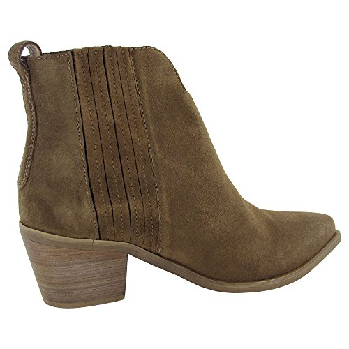 Studio : Steve Madden Publisher : Steve Madden Binding : Shoes Product Description Be a style idol this season in the completely on-trend webster ankle boot. the luxe suede upper, stacked block heel, almond toe and dual-side elastic goring panels for easy on/off give these contemporary booties, an earthy, rustic aesthetic with street-chic sensibility. 0