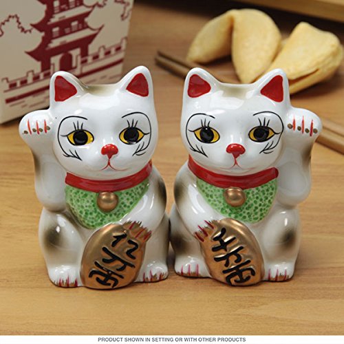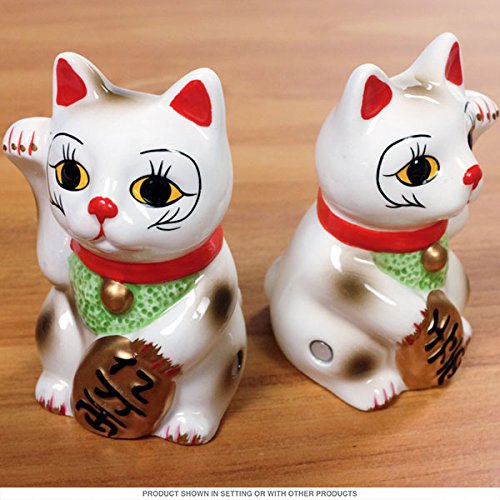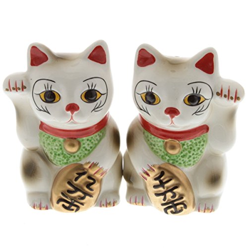 Japanese Maneki Neko - Magnetized Ceramic Salt & Pepper Shakers