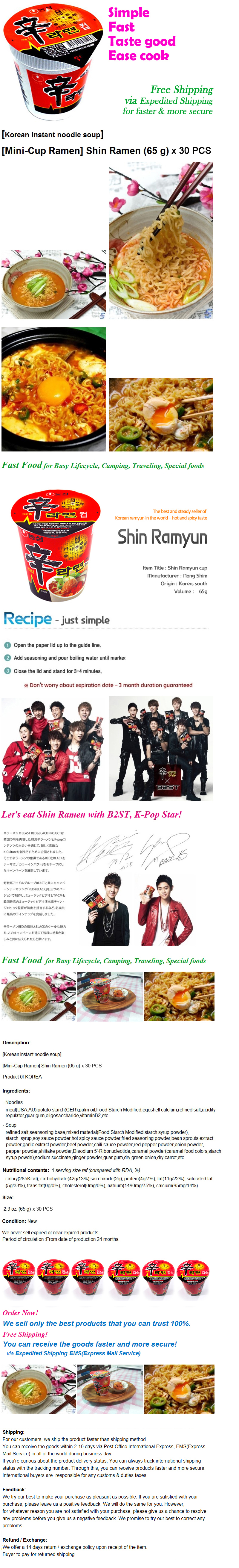 [Korean Instant Noodle] Shin Ramyun Mini Cup Ramen(65g) x 30 pcs