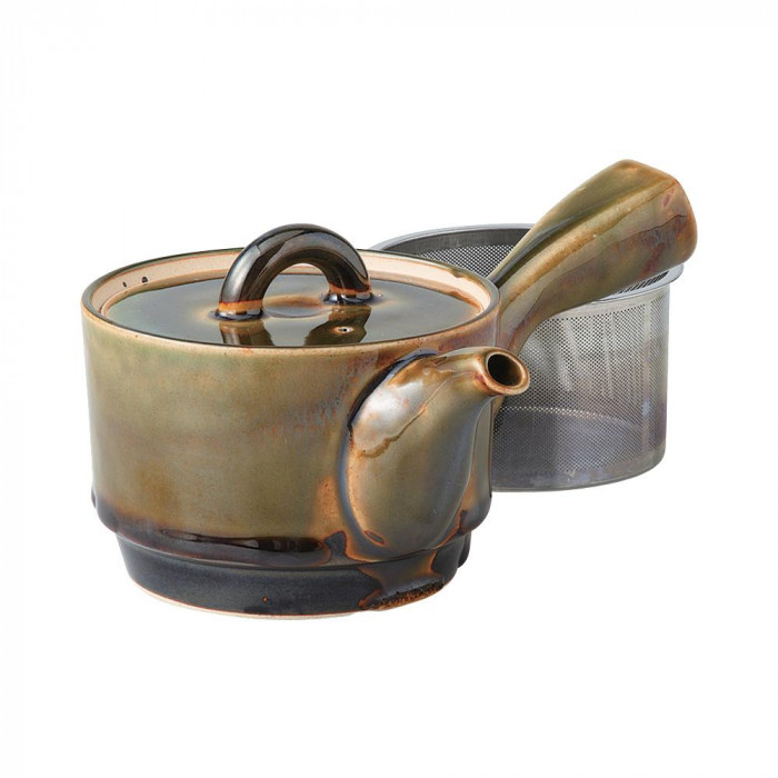 ステンレスの茶こしが付いた波佐見焼の急須。