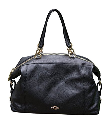 Coach Pebble Leather Lenox Satchel Handbag Shoulder Bag, Black with Gold Hardware