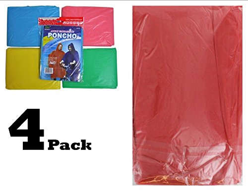 -. Feature : Hooded Plastic Poncho - 4PK. Ships In red Color / Lightweight Easy to Carry / Reusable - Packaged in SIS Emergency Resealable Emergency Pouch / Childs Size : Size: 40" x 60" / A must for school, outings, emergencies, sporting events, travel etc