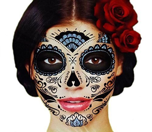 -. Binding : Misc. -. Brand : Savvi -. Color : Black -. Department : Unisex-Adult -. EAN : 0700220836020 -. Feature : Day of the Dead Skeleton Face temporary tattoo kit features black designs and silver glitter designs. / The kit includes numerous individual tattoo components for precise and creative placement on the face: mirror image designs for each side of the face and center designs for the forehead, nose and chin. / Pack of 2 complete kits / Made in the U.S.A. / Perfect design for men or women! -. Label : Savvi -. Manufacturer : Savvi -. MPN : na -. PackageQuantity : 2 -. PartNumber : na -. ProductGroup : Beauty -. ProductTypeName : BEAUTY -. Publisher : Savvi -. Size : Adult -. Studio : Savvi -. Title : Black Glitter Skeleton Day of the Dead Temporary Face Tattoo Kit: Men or Women - 2 Kits -. UPC : 787734411424