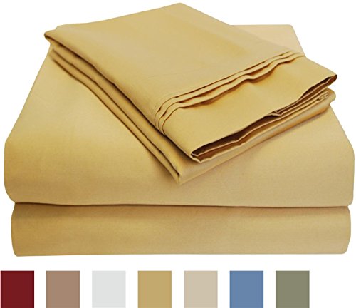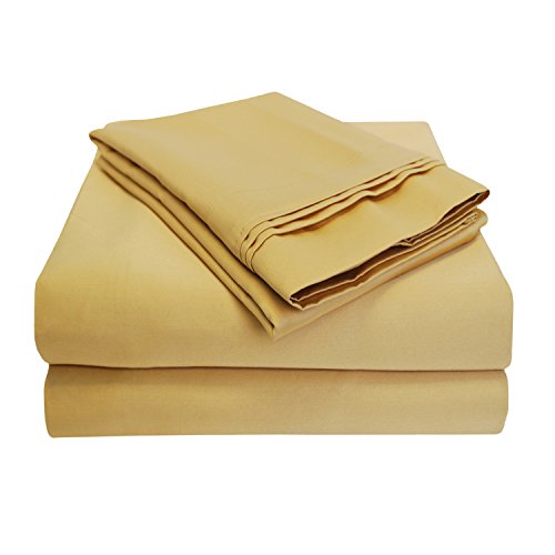 1000 Thread Count 100% Egyptian Cotton, Single Ply, Queen Waterbed Bed Sheet Set, Solid, Gold