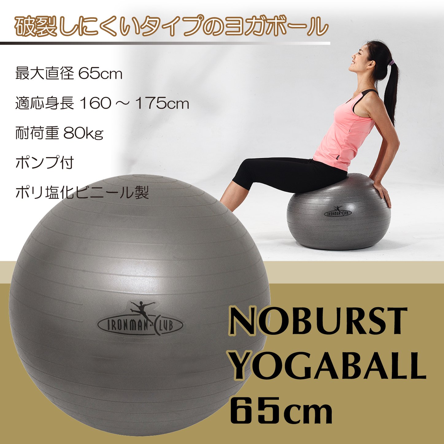 Imc-81 65cm Gray Ironman ・ Club No Burst Yoga Ball