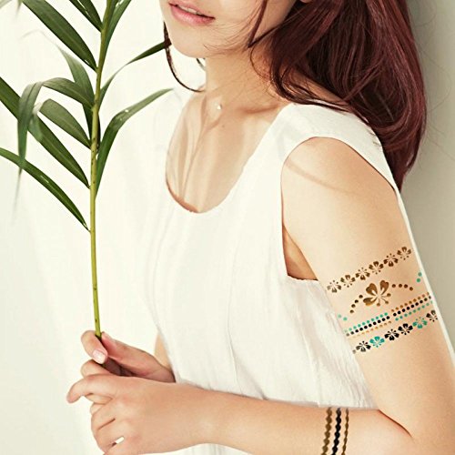 GGSELL GGSELL Metallic Temporary Tattoos Golden Gold & Silver & Black & Blue Jewelry with butterflies and flowers design fashion fake tattoo stickers