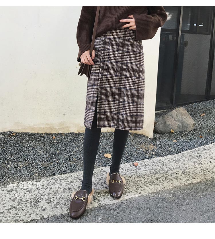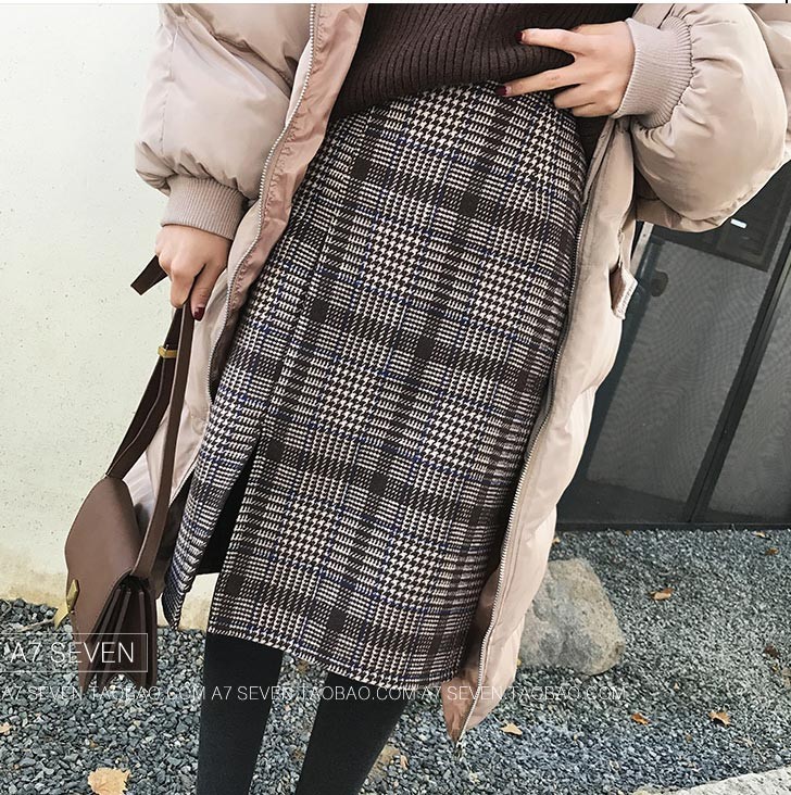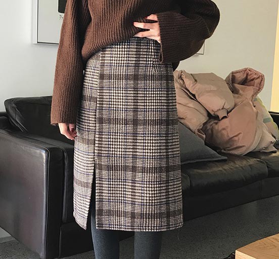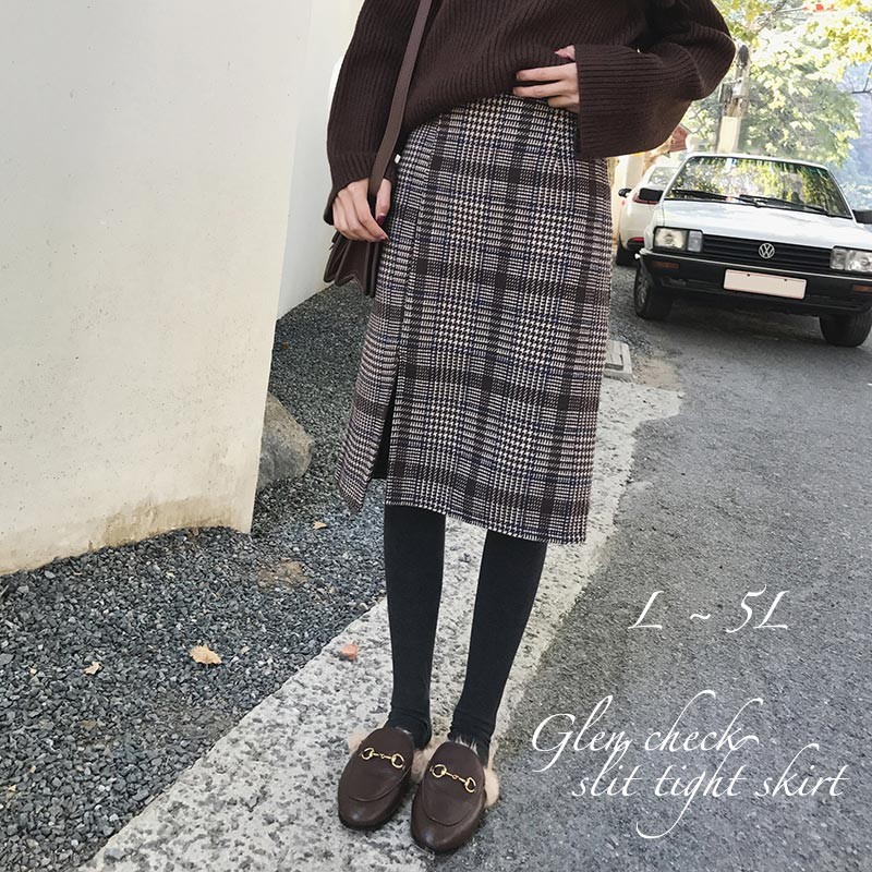 グレンチェックでフロントサイドスリットデザインのひざ丈タイトスカート♪