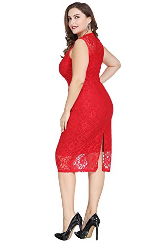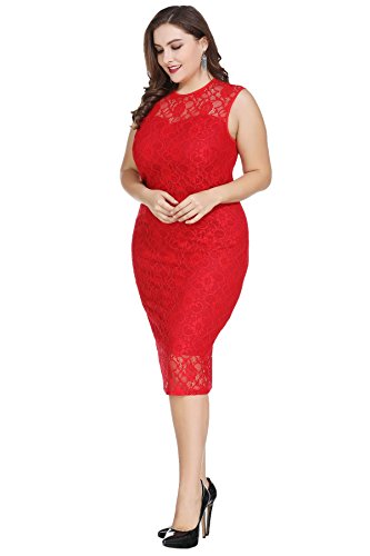 Plus Size Formal Lace Sheath Midi Dress for Cocktail Evening Wedding Party Work Red 20 Plus