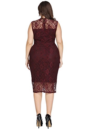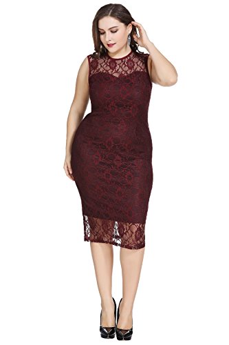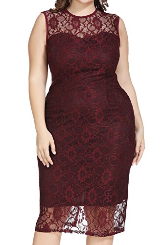 Plus Size Formal Lace Sheath Midi Dress for Cocktail Evening Wedding Party Work Burgundy 14 Plus