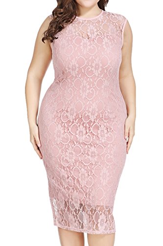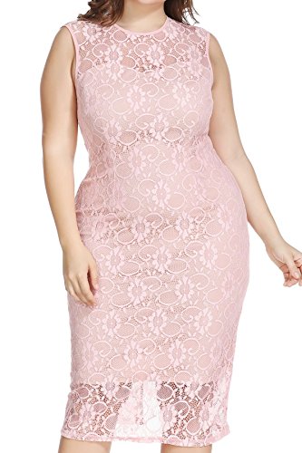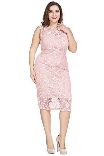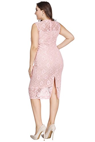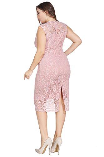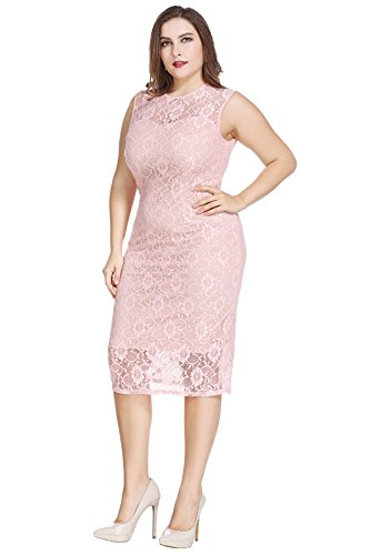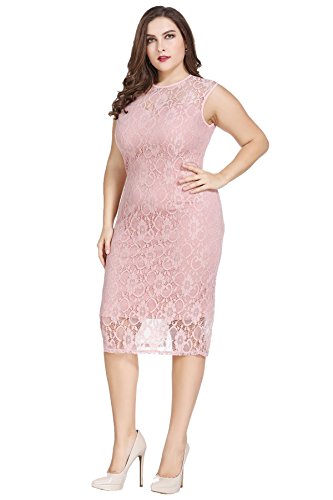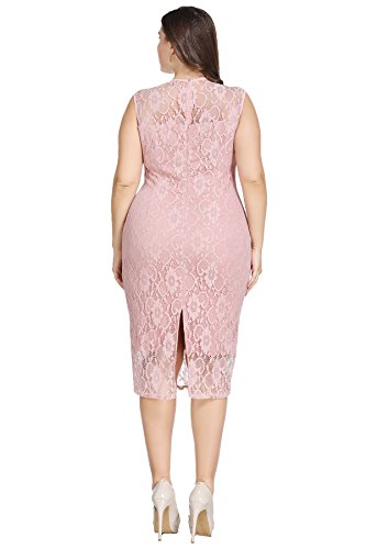 Plus Size Formal Lace Sheath Midi Dress for Cocktail Evening Wedding Party Work Pink 20 Plus