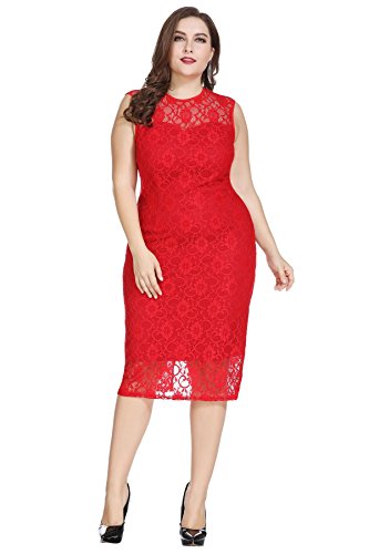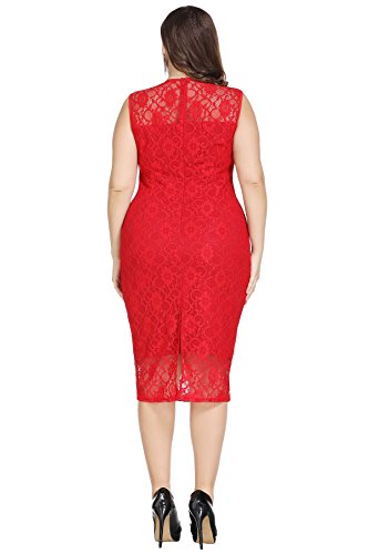 Plus Size Formal Lace Sheath Midi Dress for Cocktail Evening Wedding Party Work Red 16 Plus