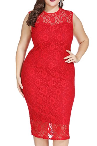 Plus Size Formal Lace Sheath Midi Dress for Cocktail Evening Wedding Party Work Red 18 Plus