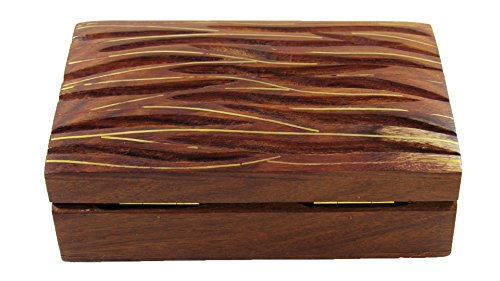 Handmade Decorative Wooden Jewellery Box for Women Jewel Organizer Carving lines By AUB
