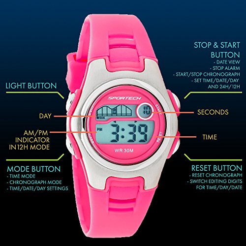Unisex Watches by Sportech - Pink Digital Water Resistant Sport Watch - Make Every Second Count - SP10219