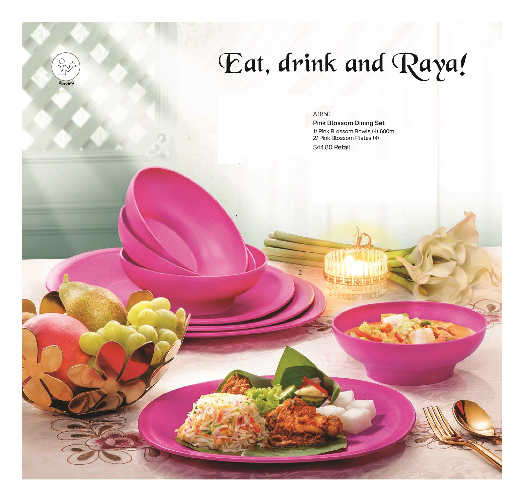 Pink Blossom Dining Set come with 4 Bowls and 4 Plates
