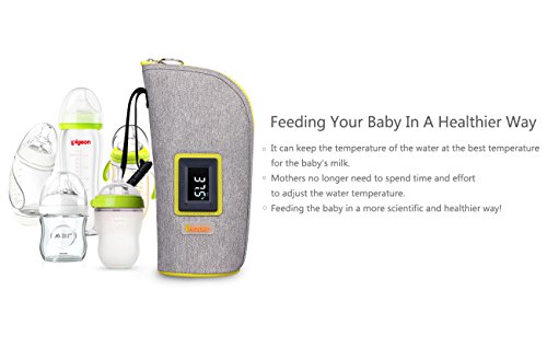 -. Feature : ❤Feeding Your Baby In A Scientific and Healthier Way:Do you know the best brewing milk temperature is between 104-140℉?Milk at this temperature is best for feeding the baby. Using this bottle warmer bag, mother can feed the baby with the best water temperature and the healthiest way anytime and anywhere. Kind reminder:Do not have heating function,please avoid heating the cold water or milk. / ❤Humanization Design:Mother takes baby out, the first problem to solve is the feeding problem. Usually, mother needs to bring a thermos bottle and a bottle of cold water, which inevitably increases the mother's burden. When baby is hungry, but the milk is not ready. Use this bottle warmer bag, Mom puts a bottle of warm water in Bottle Warmer Bag, and with an empty bottle. You can feed the baby anytime and anywhere.It make parents' job easier. / ❤Very Convenient to Carry:Use a smart bottle warmer bag. convenient for preparing milk or feeding baby anytime,anywhere. but also can be suspended in strollers, baby umbrella car, baby tricycle and other stroller, it also can be used at home. / ❤Very Convenient to Use: Insert the cable into the mobile power supply, or the vehicle USB interface, the notebook computer interface. (this product does not contain portable batteries), the system starts to work, the screen displays the temperature. / ❤Best Gift for Great Mother or Father: This is a product that makes it easier for moms to feed their baby. It is also a best gift for parents!If you have any questions, or if you have good advice, please contact our customer service department. Our service team will be able to help you at any time.