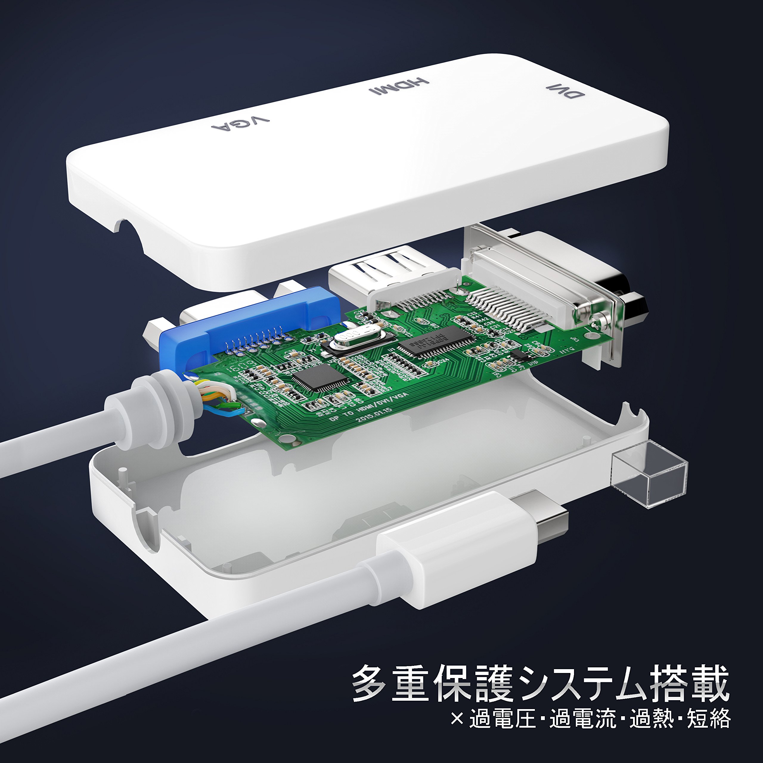 By using this product, you can easily connect an external display, DVI, HDMI equipped LCD TV, projector etc equipped with DVI / VGA / HDMI.