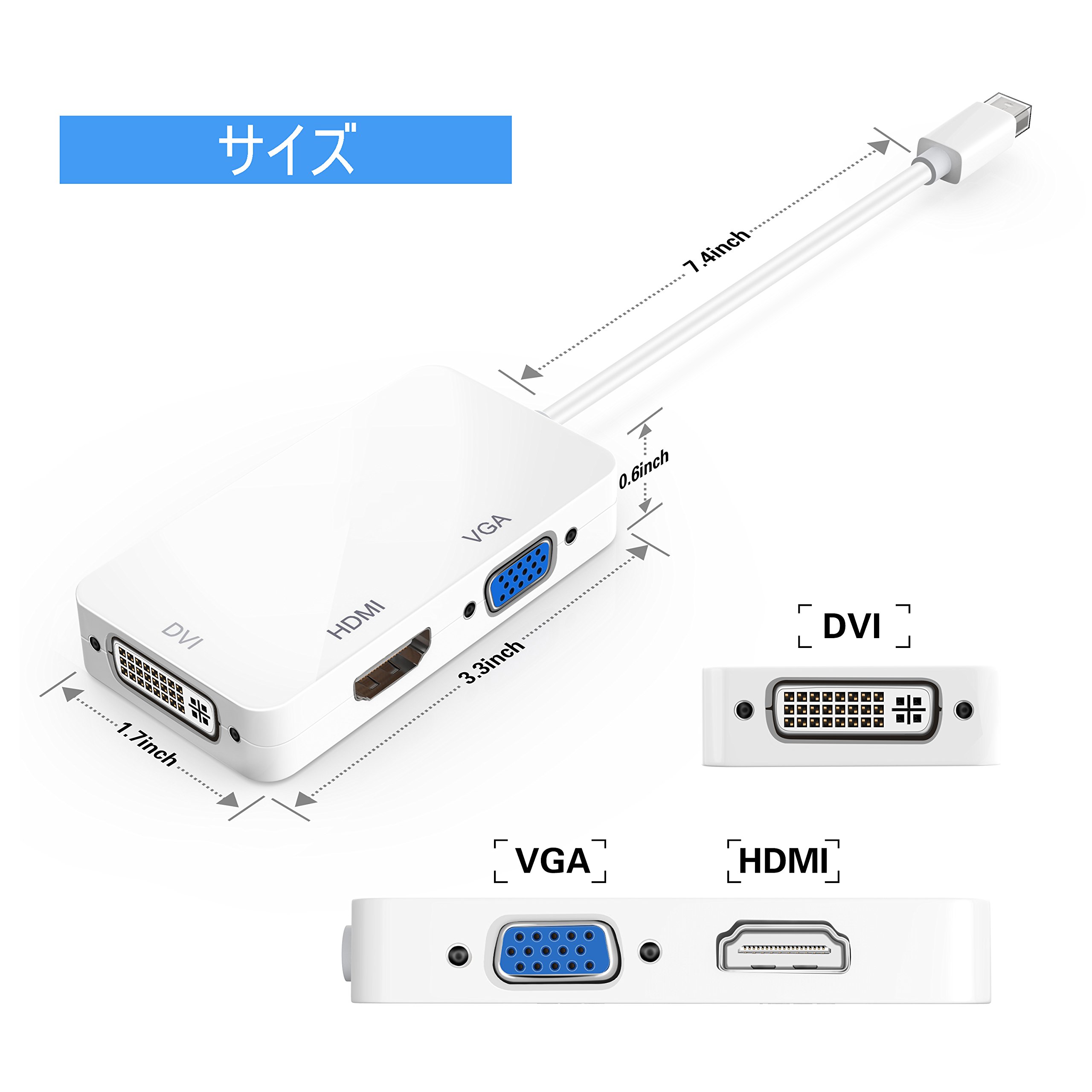 5, Package Contents: 1 xMini DisplayPort / Thunderbolt toDVI / VGA / HDMI adapter cable